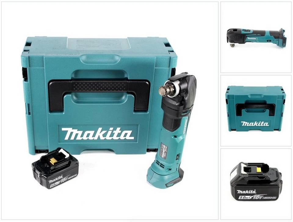 Makita Akku-Multifunktionswerkzeug »Makita DTM 51 T1J 18V Li-Ion Akku Multifunktionswerkzeug im Makpac + 1x BL 1850 B 18V – 5,0 Ah Li-Ion Akku – ohne Zubehör, ohne Ladegerät«