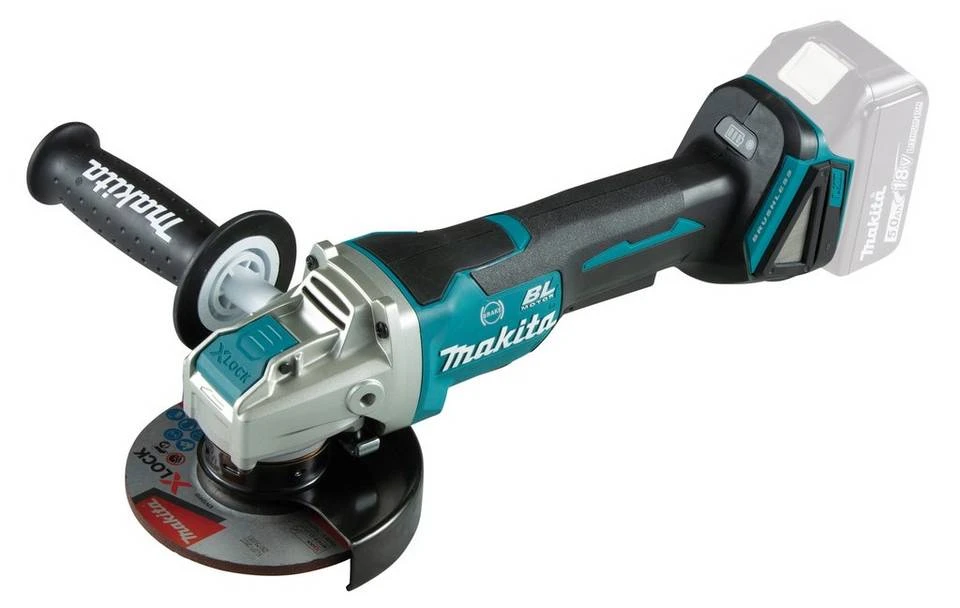 Leistungsstarker Akku-Winkelschleifer mit X-LOCKSchnellwechselsystem und Paddelschalter. Der handliche Akku-Winkelschleifer ist mit einem Scheibendurchmesser von max. 125 mm für anspruchsvolle Arbeiten geeignet. Dank des XLOCK-Systems ist ein schneller und einfacher Scheibenwechsel möglich. Die Active Feedback sensing Technologie stoppt die Maschine, wenn diese blockiert wird und verhindert ein Rückschlagen der Maschine.