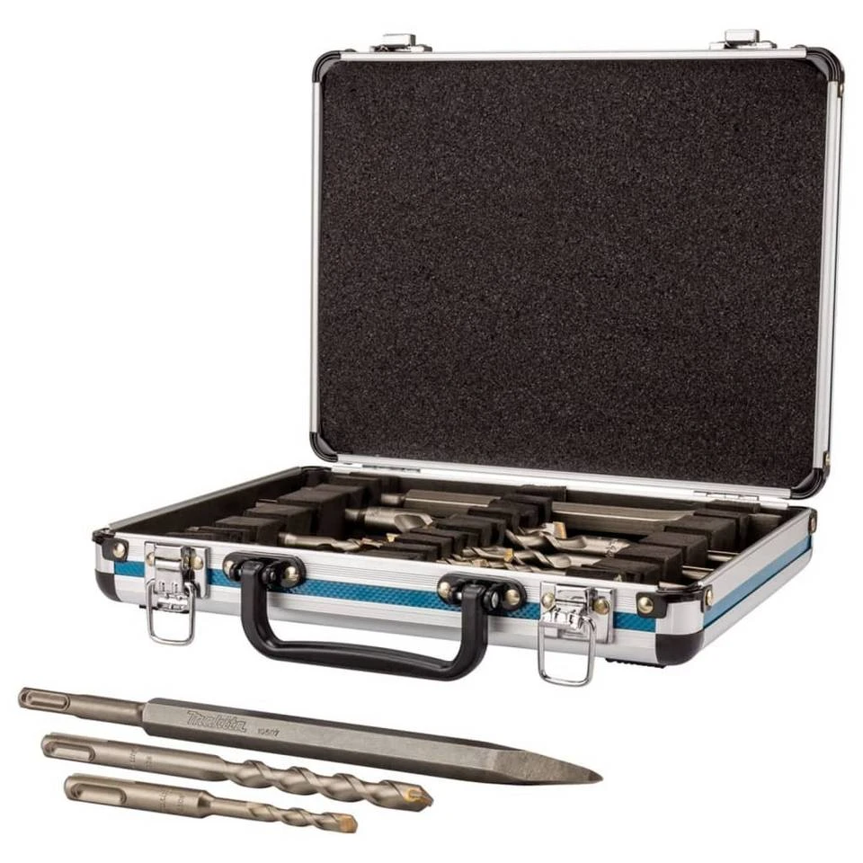Im Lieferumfang ist ein kompletter Satz Betonbohrer, Spitzmeißel und Breitmeißel enthalten. Alle Werkzeuge werden in einem handlichen Aluminiumkoffer mit Schloss und Griff zur Aufbewahrung und zum Schutz geliefert.