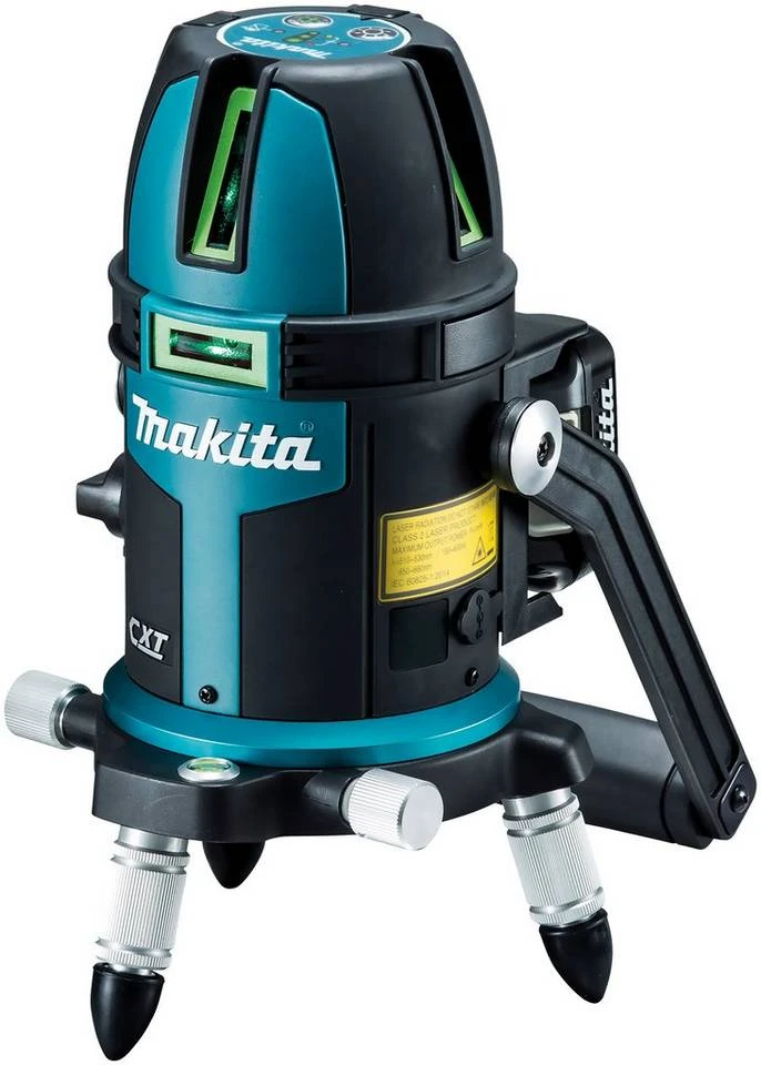 - 1 horizontale, 2 vertikale leuchtstarke grüne Laserlinien