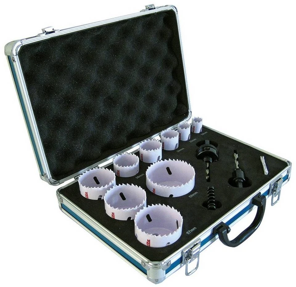 - 9 unterschiedliche Lochsägeeinsätzen von 19 – 68mm aus HSS-BI-Metall
