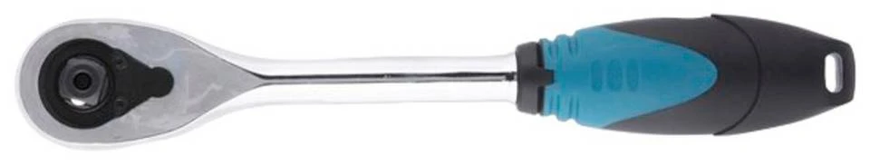 Die flache Ratsche eignet sich hervorragend für enge Anwendungsbereiche, die 84-fache Verzahnung sorgt zugleich für ein effizientes und schnelles Anziehen. Die aufgesetzten Steckschlüssel werden per Knopfdruck gelöst und ausgeworfen. Eine verlängerte Backe, die in die Verzahnung greift sorgt für eine lange Lebensdauer.