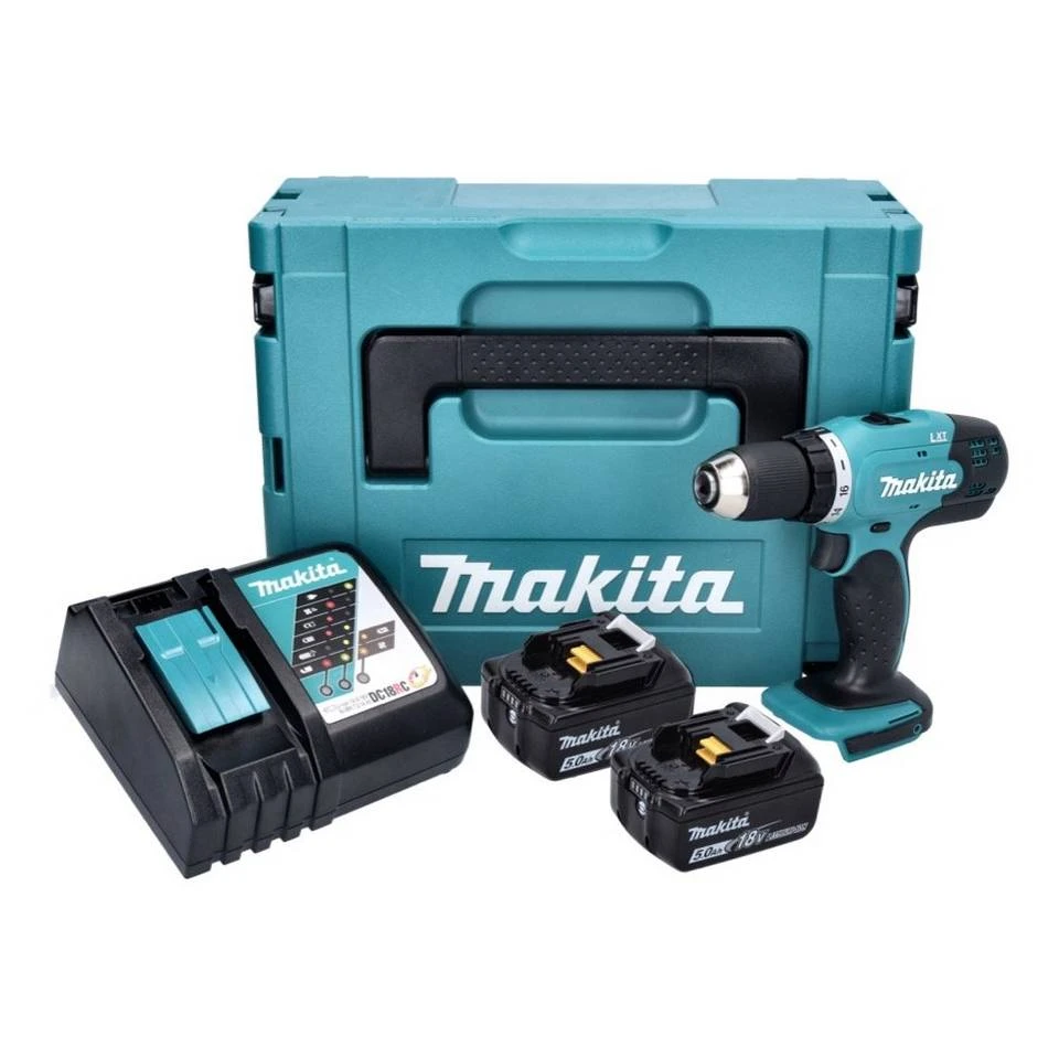 Makita Akku-Bohrschrauber »DDF485RF3J«, (6-tlg), mit 3 Akkus 18V/3Ah, Schnellladegerät und MAKPAC 2
