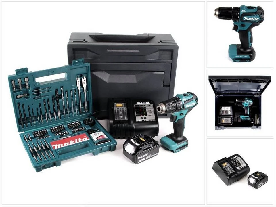 Makita Akku-Bohrschrauber »DDF485RF3J«, (6-tlg), mit 3 Akkus 18V/3Ah, Schnellladegerät und MAKPAC 2