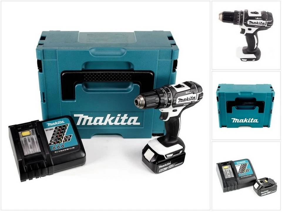 Makita Akku-Bohrschrauber »DDF485RF3J«, (6-tlg), mit 3 Akkus 18V/3Ah, Schnellladegerät und MAKPAC 2